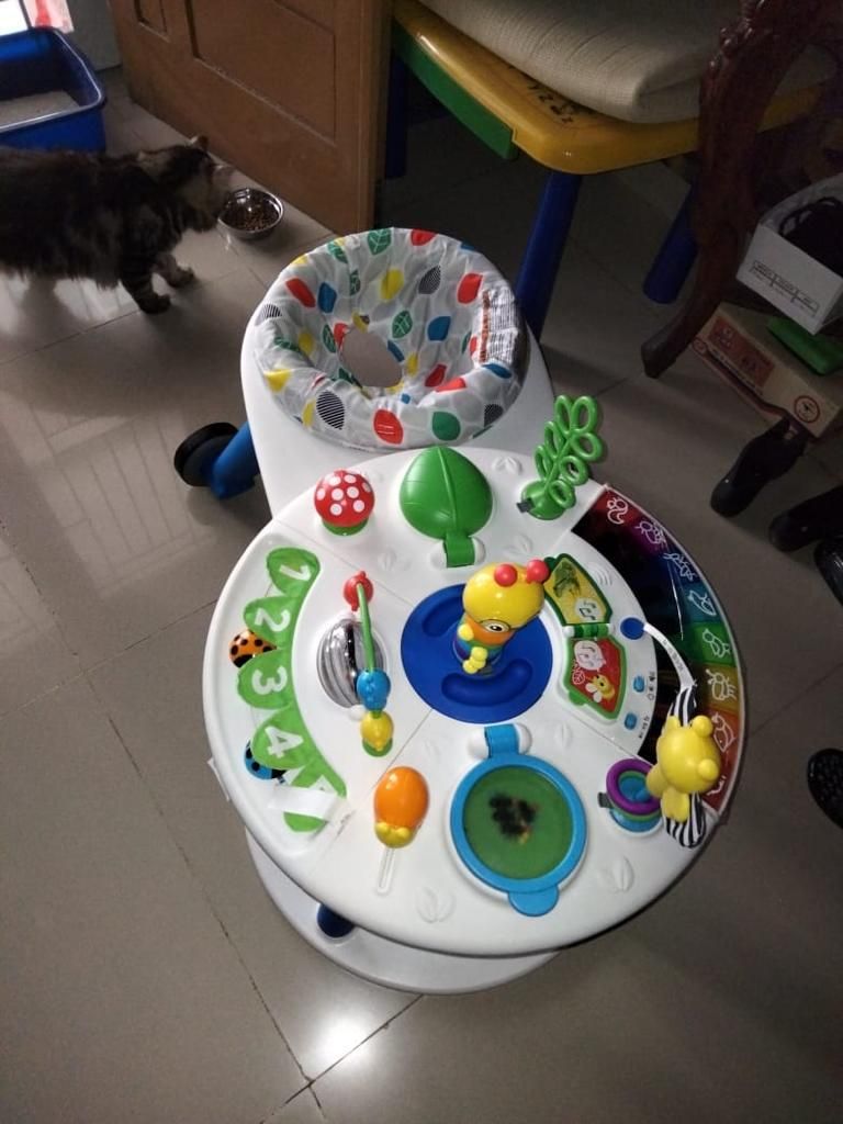 Alat ini merupakan baby walker statis, baby hanya bisa berjalan mengelilingi meja mainan yang ada di depannya saja.