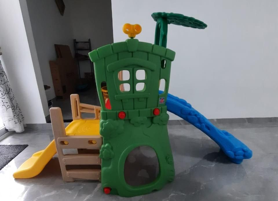 Memiliki 2 perosotan dalam 1 mainan, bisa dimainkan 2 anak sekaligus.
