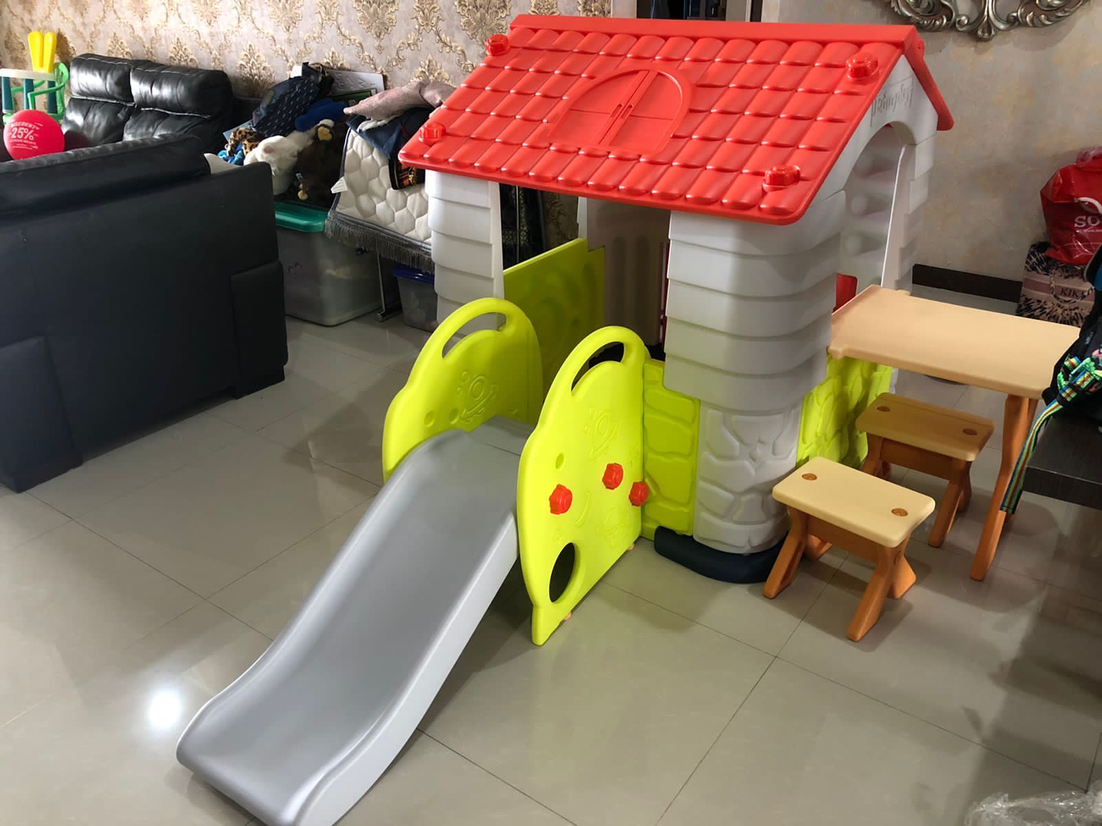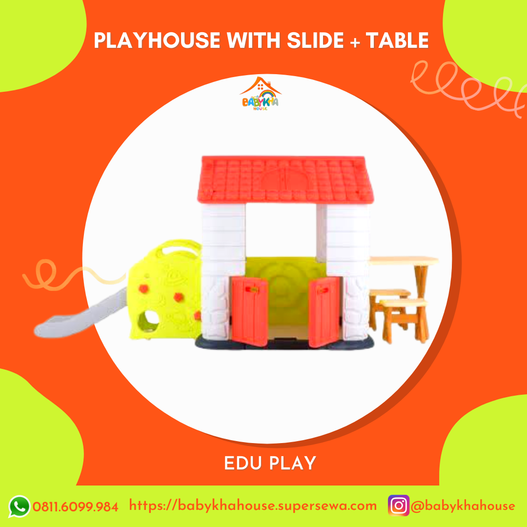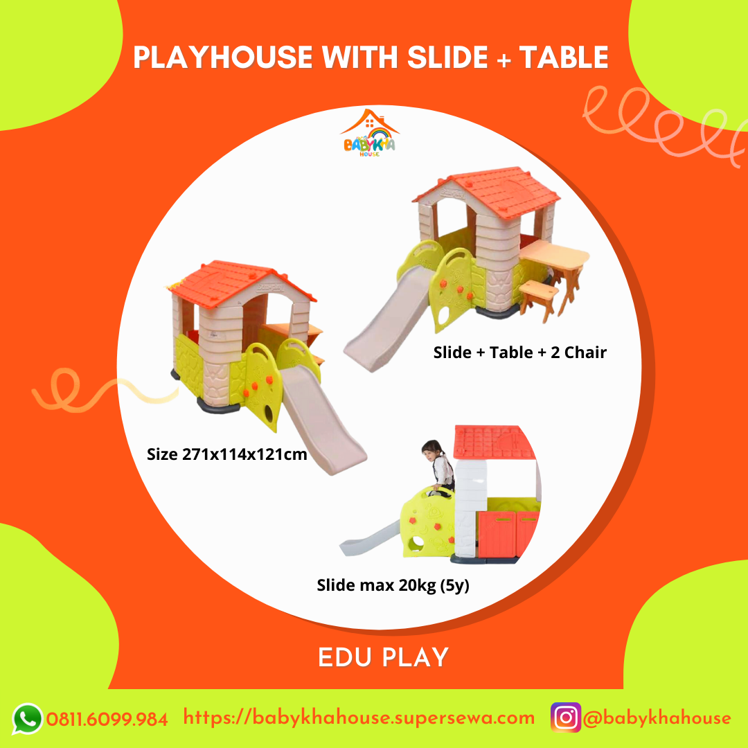 Playhouse ini memiliki Slide dan Meja sekaligus 2buah kursi.